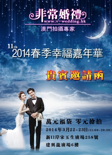 2014年澳门春季幸福嘉年华~係呢个礼拜六日(3月2 2—23日)係非常婚礼建兴龙6楼隆重举行!